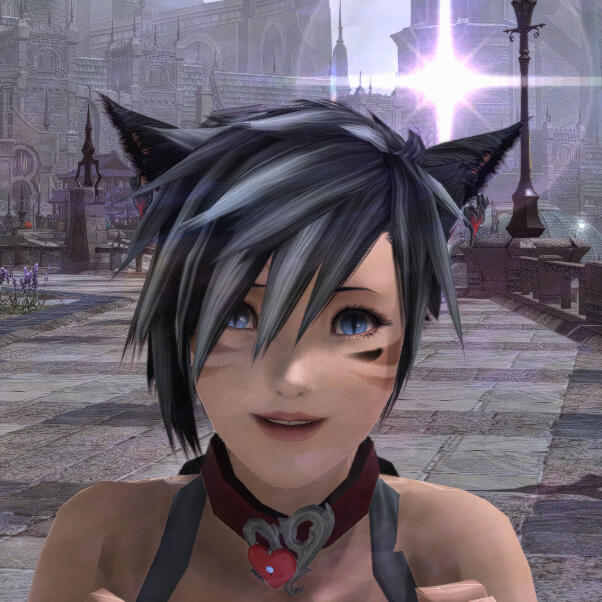 Your likely to find her roaming the streets of the Crystarium. Looking for her secret crush!Sometimes she can be seen sneaking away to her own private island for some R&R time.She's a helpful adventurer, always willing to help someone in need whether it be with crafting, gathering or hunting a monster out in the wild.She loves to craft and gather. If it can make her Gil, Mio is usually going to try her hand at it. She's a Miqo'te with expensive tastes and those tastes cost Gil.She spent years studying the White and Black arts before relinquishing the staff and picking up the Katana and Chakrams to flail around the battlefield in a dancing fury.She's very shy and tends to keep to herself. However that doesn't stop her from trying to make new friends on occasion.